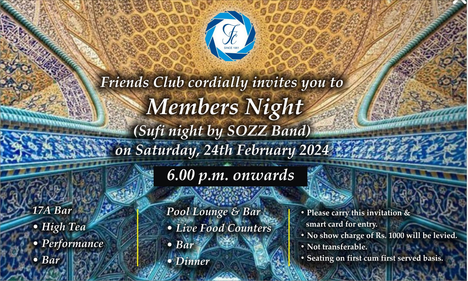 Friends Club Ltd. was established on 24.10.1961 on a plot of land reserved by the Founder Members and promoters of the Friends Colony.